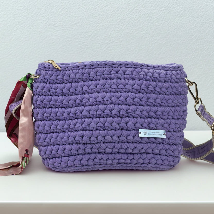 Soft, serene, and beautifully handcrafted — the Arwen in Lavender is a delicate and stylish handmade crochet crossbody bag, crafted from 100% cotton T-shirt yarn sourced from Ukraine. Its gentle lavender hue brings a calming, feminine touch to your look, perfect for spring days, romantic outings, or adding a subtle pop of color.
