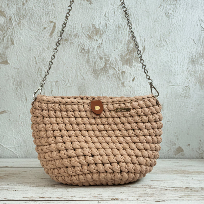 Warm, refined, and effortlessly stylish — The Lily in Caramel is a handcrafted handmade crochet crossbody bag made from durable 100% cotton T-shirt yarn sourced from Ukraine. Its soft caramel hue creates a cozy, neutral palette that complements any outfit—from casual days to chic evenings.