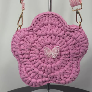 Handmade Crochet Flower Crossbody Purse for Kids – Bubblegum Pink