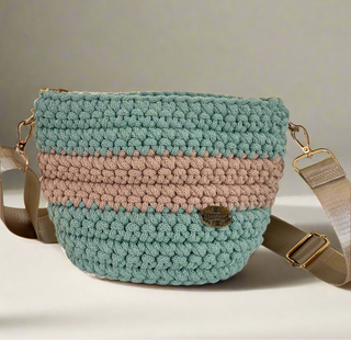The Arwen – Handmade Crochet Crossbody Bag in Aloe & Caramel